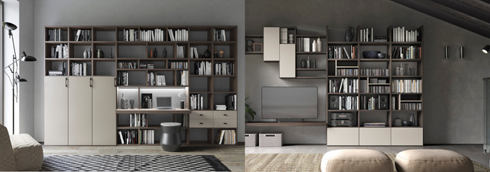 Dalle pareti attrezzate moderne o classiche alle librerie componibili e di design, ogni proposta è studiata per adattarsi a spazi grandi o piccoli, offrendo anche soluzioni su misura capaci di sfruttare al meglio ogni parete della casa.